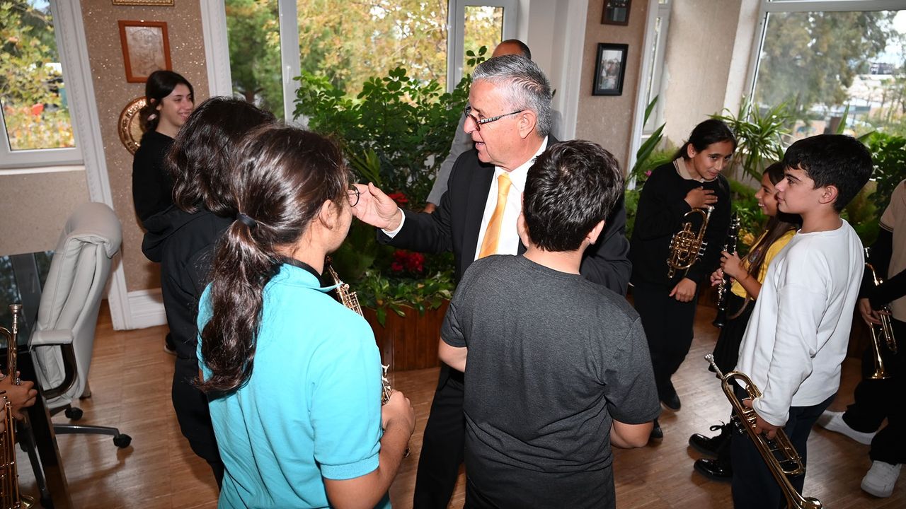 Geleceğin müzisyenlerini kapıda karşılayan Başkan Topaloğlu, öğrencilerin sürprizi karşısında duygu dolu anlar yaşadı.