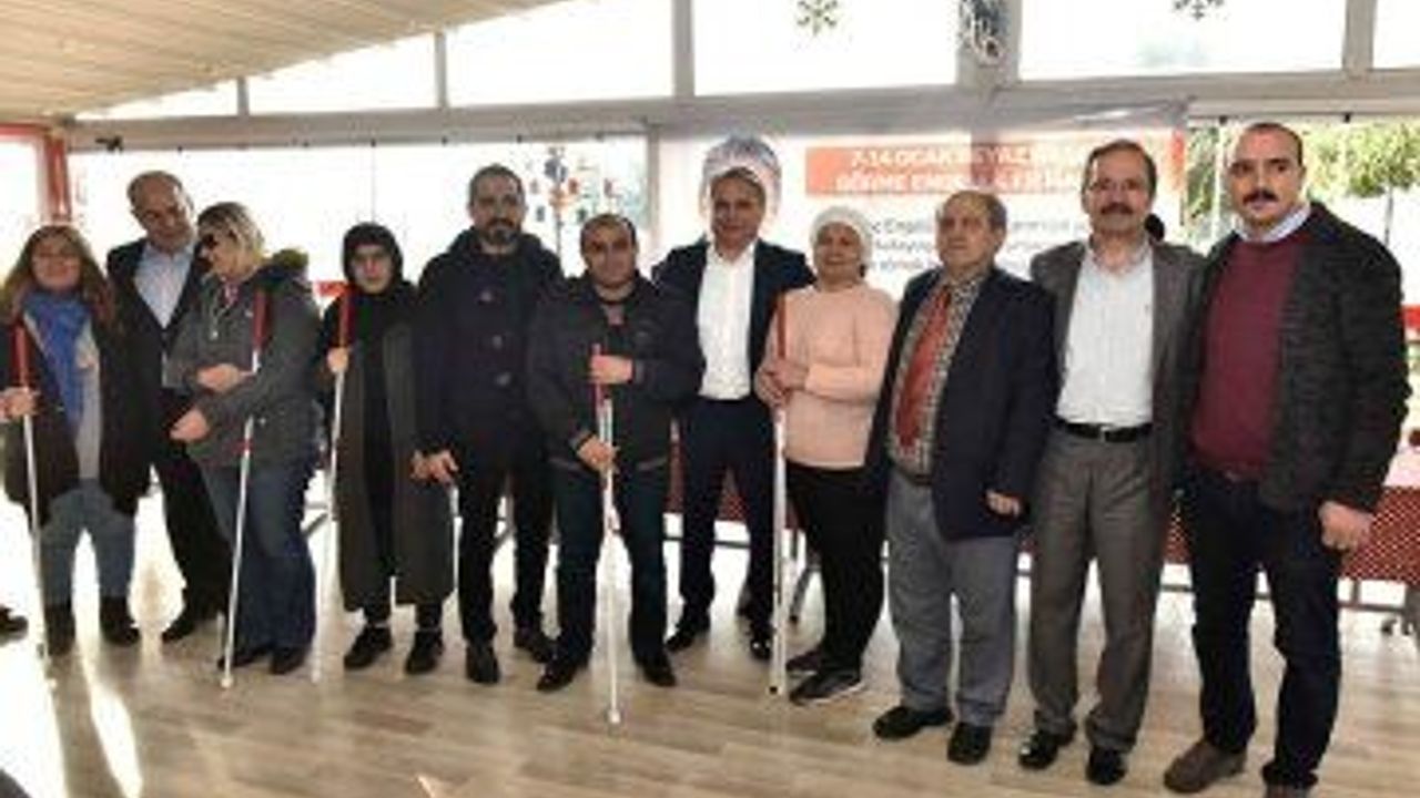 Başkan Uysal, konuşmasının ardından 250 dernek üyesine beyaz baston hediye etti. (İHA)