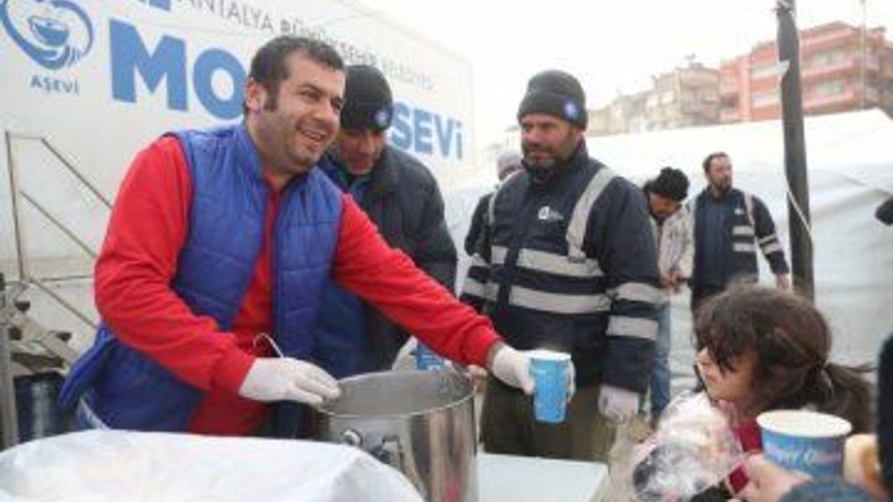 Antalya Büyükşehir Belediyesi, Türkiye'yi yasa boğan deprem bölgesi Hatay'da depremzedelere sıcak yemek ikramını sürdürürken, bölgede görevli personelinde beslenme ve ihtiyaçlarına da destek oluyor