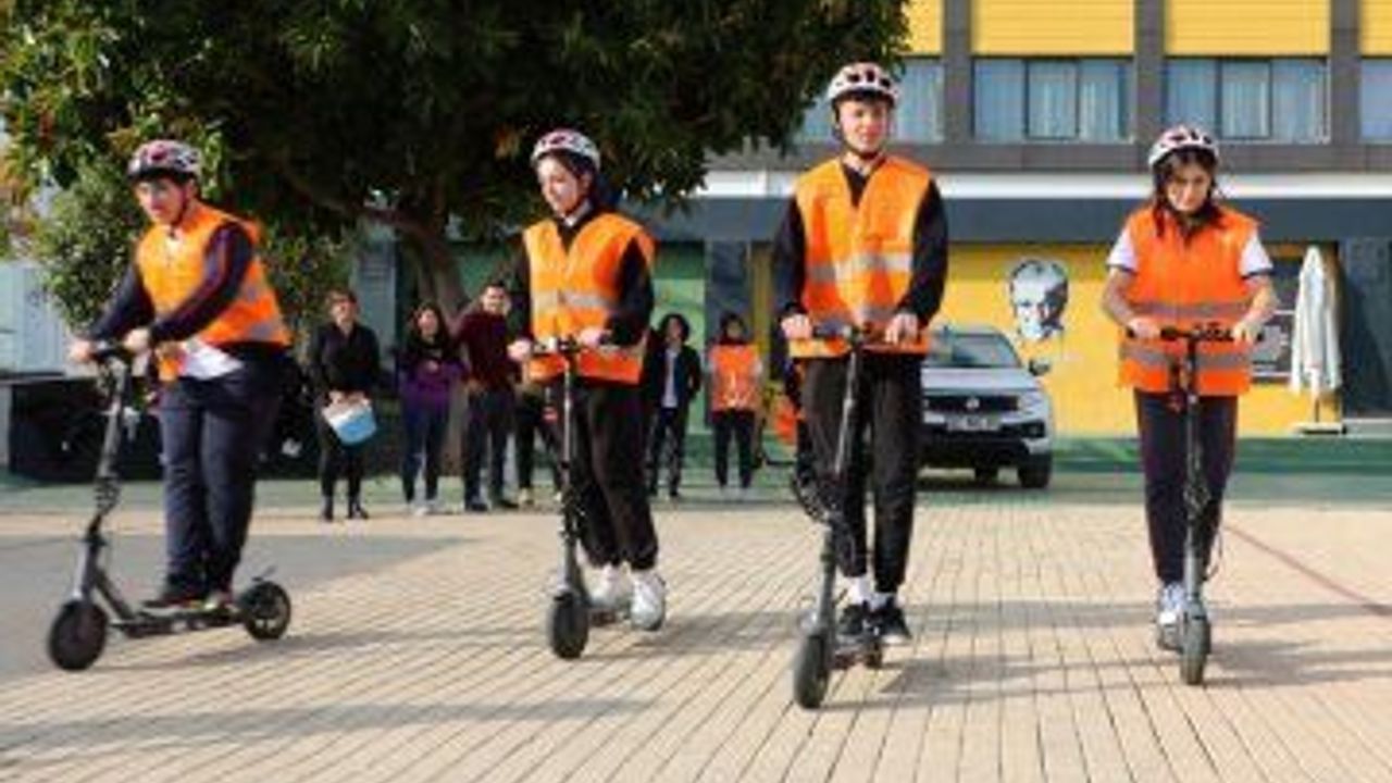 Öğrencilere, Skuter'da azami hız sınırının 25 kilometre olduğu, yaş sınırının 15 olduğu, yaya yollarında kullanılmayacağı, bisiklet yolu veya şeridinin olduğu yerlerde taşıt yolunda sürülemeyeceği, birden fazla kişi binemeyeceği ve sırtta taşınan eşyalar dışında yük taşınamayacağı anlatıldı. Bilgilendirme eğitimi sonrasında öğrencilere uygulamalı olarak sürüş eğitimi verildi.