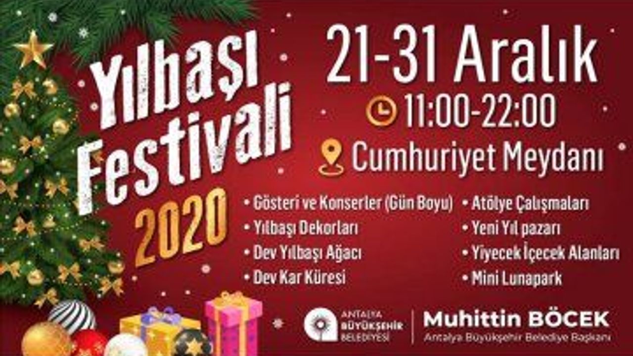 ANTALYA Büyükşehir Belediyesi, 2020 yılını muhteşem bir festivalle karşılamaya hazırlanıyor. Antalyalılar, 21-31 Aralık tarihleri arasında Cumhuriyet Meydanı'nda düzenlenecek Yılbaşı Festivali'nde farklı aktivite ve konserlerle yeni yıla merhaba diyecek. Büyükşehir Belediyesi tarafından hazırlıkları haftalar öncesinden başlayan Yılbaşı Festivali kapsamında her gün saat 11.00'den 22.00'ye kadar gün boyu farklı gösteri ve konserler, atölye çalışmaları düzenlenecek. Dev yılbaşı ağacı ve dev kar kürelerinin süsleyeceği Cumhuriyet Meydanı'nda yeni yıl pazarı da kurulacak. Alanda ayrıca yiyecek içecek alanları ve çocuklar için mini lunapark da yer alacak. Yılbaşı akşamı ise gece havai fişek gösterileri ile renklenecek. (DHA)