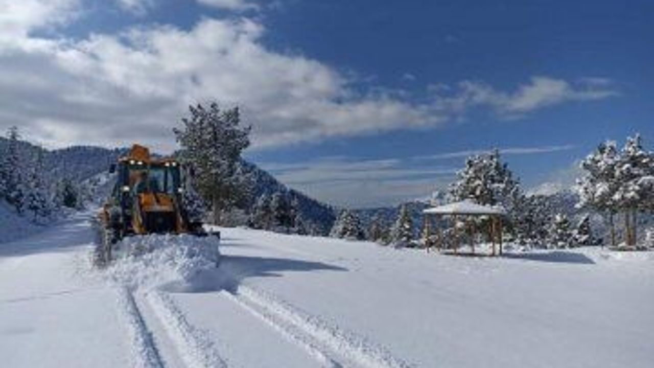 Antalya Büyükşehir Belediyesi ekipleri, kentin yüksek kesimlerindeki karla mücadele çalışmalarını sürdürüyor