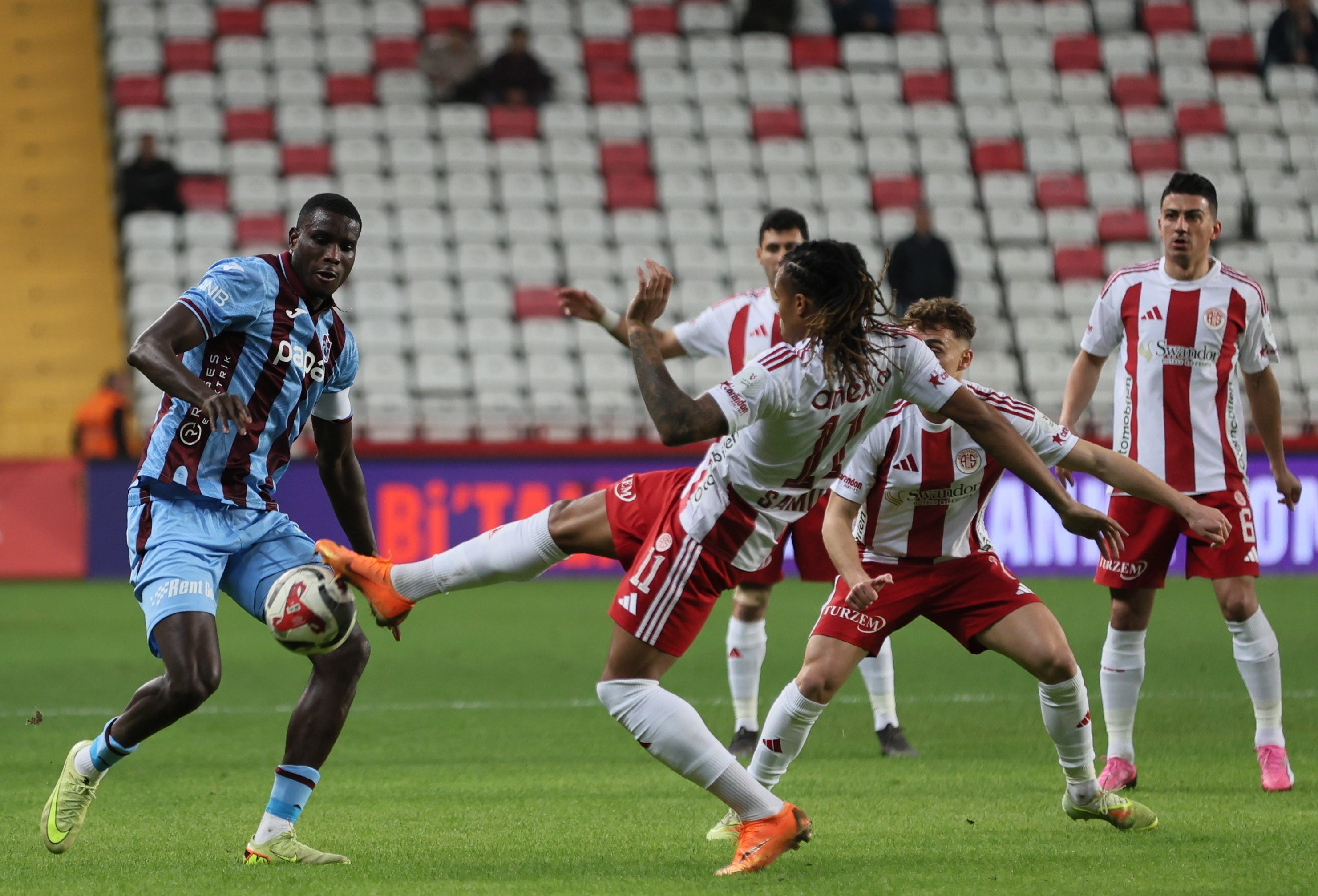 Süper Lig’in 20. haftasında Antalyaspor, evinde zirve yarışında mücadele veren Trabzonspor ile karşı karşıya geldi. Karşılaşma karşılıklı gollerle 1-1 beraberlikle sonuçlandı. Mücadelede hakem Oğuzhan Çakır, Trabzonspor lehine 3 kez penaltı noktasını gösterdi. Konuk ekip kazandığı penaltılardan birini değerlendirdi. Mücadelede Antalyaspor Teknik Direktörü Sami Uğurlu, hakeme itirazları nedeniyle kırmızı kart gördü.