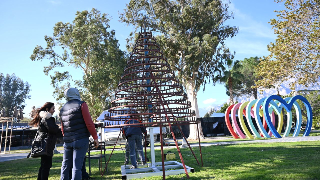 Atıkların geri dönüşümünde farkındalık oluşturmak amacıyla tasarlanan yılbaşı ağacı vatandaşların ve turistlerin de yoğun ilgisini çekiyor.