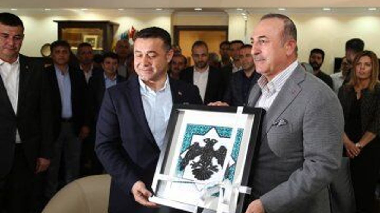 DIŞİŞLERİ Bakanı Mevlüt Çavuşoğlu, memleketi Antalya'nın Alanya ilçesinde belediyeyi ziyaret etti. Cumhur İttifakı'nın adayı MHP'li Adem Murat Yücel'i makamında ziyaret eden Çavuşoğlu'nu AK Parti İl Başkanı İbrahim Ethem Taş, MHP ve AK Parti'nin ilçe yöneticileri ve belediye çalışanları, belediye girişinde karşıladı. Ziyaretinin amacının yerel seçimlerde yeniden ipi göğüsleyen Yücel'i kutlamak olduğunu belirten Çavuşoğlu, 'Canı gönülden tebrik ediyorum. Geçen 5 yıl içinde Alanya'mıza güzel hizmetler yaptı. Seçim zamanında Cumhur İttifakı olarak uyumlu şekilde çalıştık. Gelecek 5 yıl içinde güzel projeler ortaya koyduk. Halkımız güzel hizmetlere teşekkür etmek, gelecek 5 yıl içinde güvendiği için çok güçlü bir şekilde tekrar belediye başkanımızı koltuğuna oturttu' dedi.