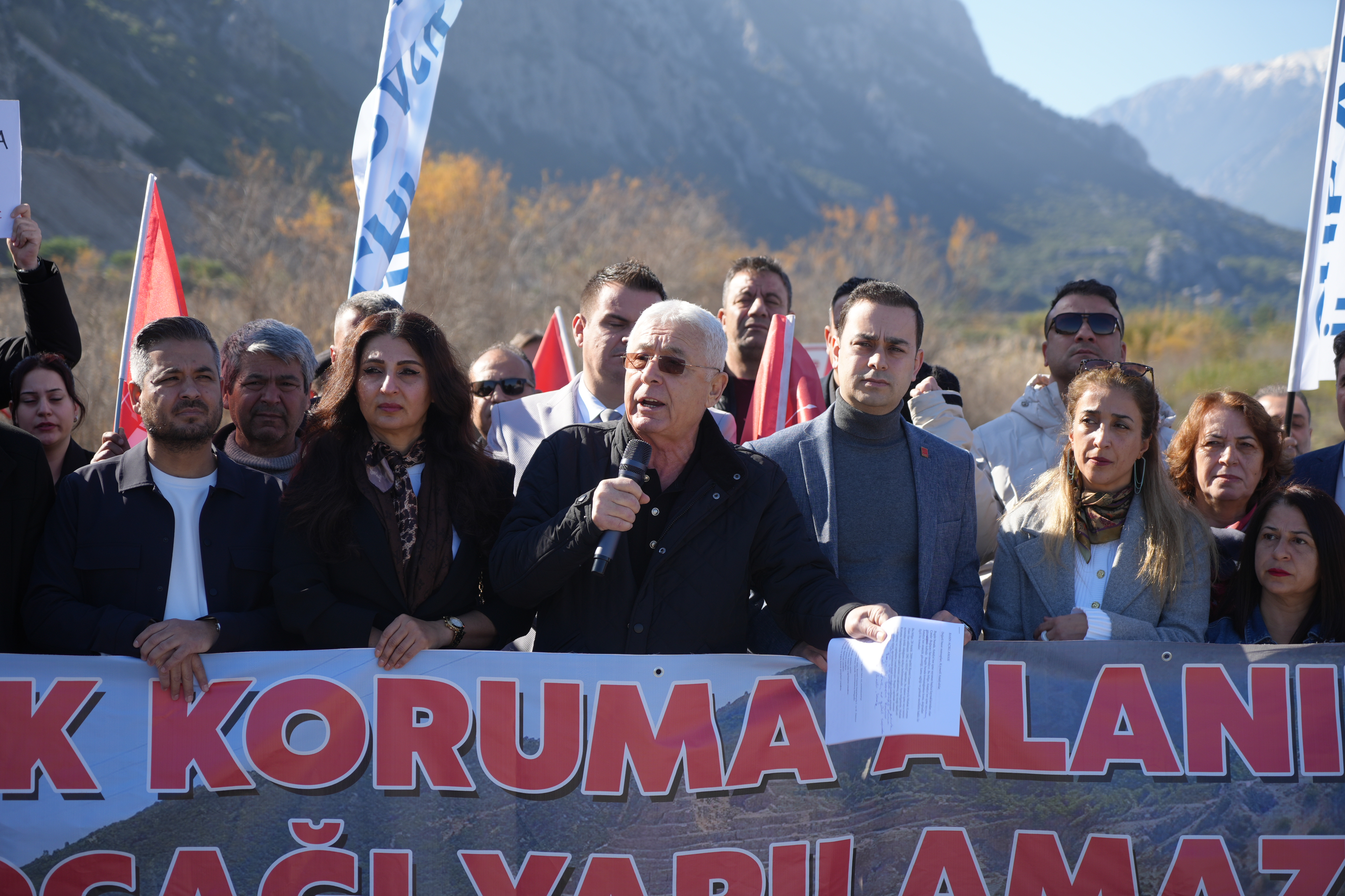 Eylemde ilk olarak konuşan CHP Konyaaltı İlçe Başkan Yardımcısı ve çevre mühendisi Barış Cengiz, “Çandır Çayı Havzası, temel olarak Konyaaltı’nı dolayısıyla Antalya’mızı besleyen içme suyu kaynaklarını barındıran bir havzadır. Buraya yapılacak bir müdahale, doğrudan evlerimizden akan musluktaki suya ve ileride çocuklarımızın içeceği içme suyuna müdahale anlamına gelmektedir. Bu bölgede yapılmak istenen kum, çakıl, taş ocakları gibi faaliyetler basit bir yatırım meselesi değildir. Burası yasal mevzuatlarla müdahalelerin tamamen yasaklandığı bir alandır. Bu nedenle burası sadece çevre açısından değil, aynı zamanda bir hukuk meselesidir. Eğer burada planlanan taş ocağı veya çakıl ocağı gibi bir faaliyet yapılırsa, su altı kaynaklarımıza ve içme sularımıza doğrudan müdahale edilecektir. Bu kaynaklar çok kısa sürede kirletilecektir. Dolayısıyla bu, geri dönüşü mümkün olmayan bir zarar verecektir” dedi.