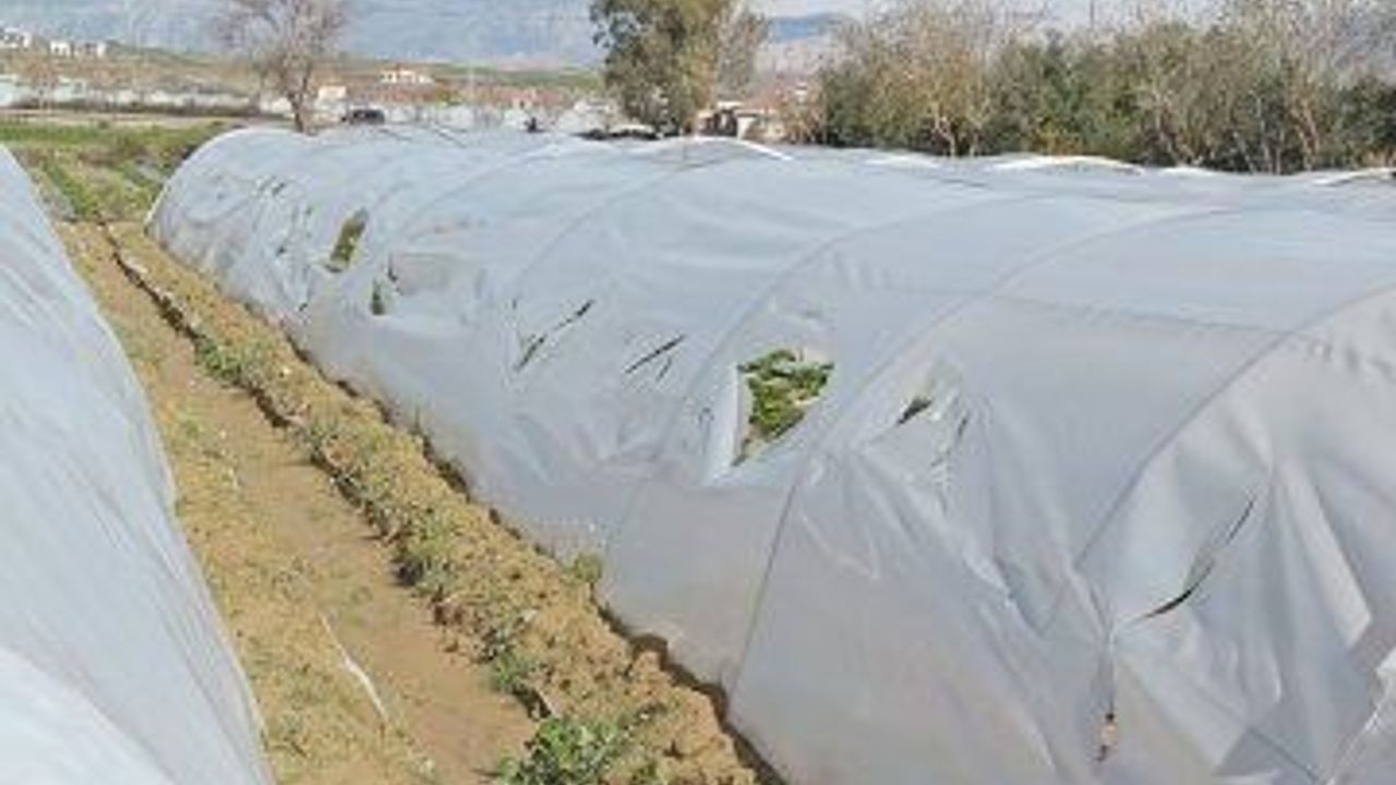 Çilek serasının naylonunu keserek zarar verdiler