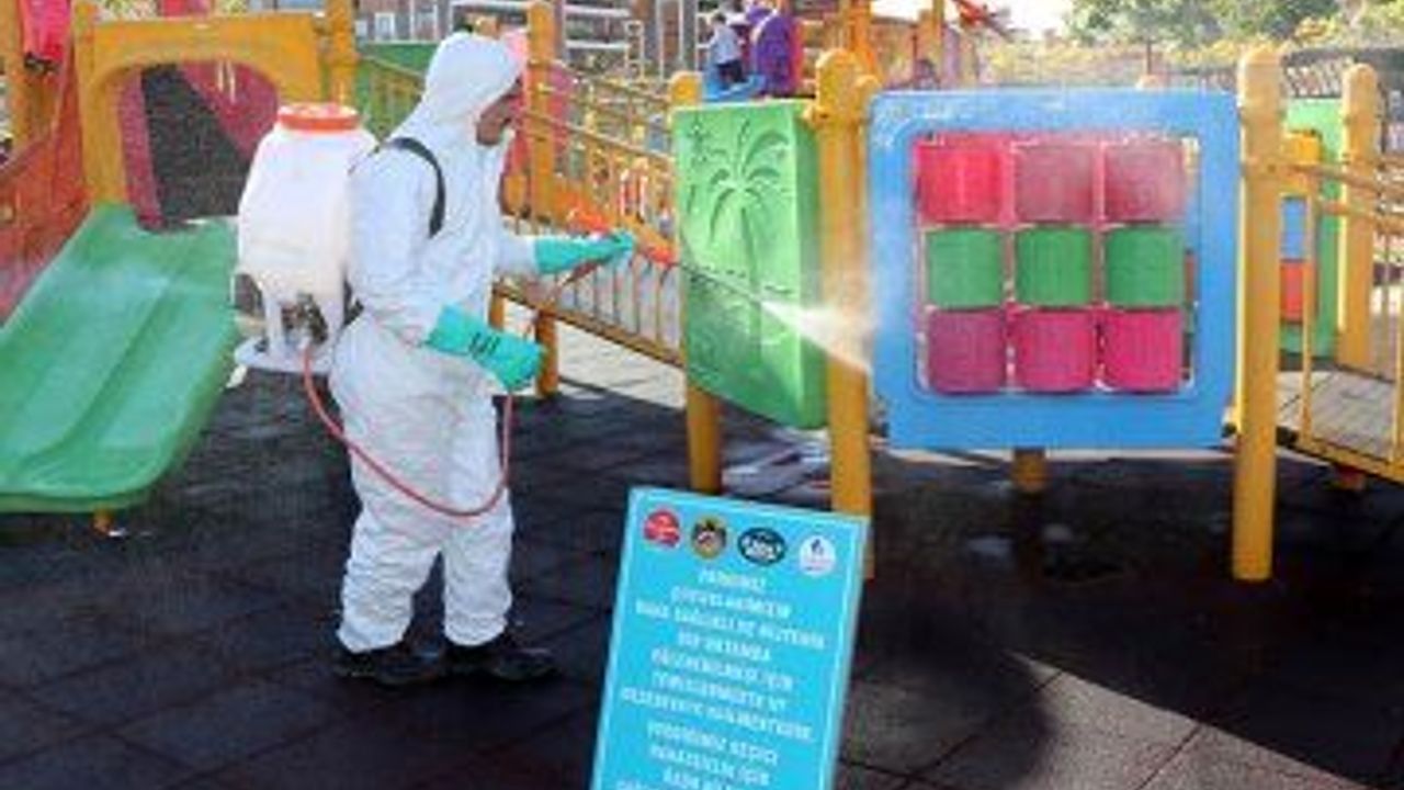 ANTALYA'nın Alanya ilçesinde çocuk parklarının dezenfekte edilmesi için çalışma yapıldı.