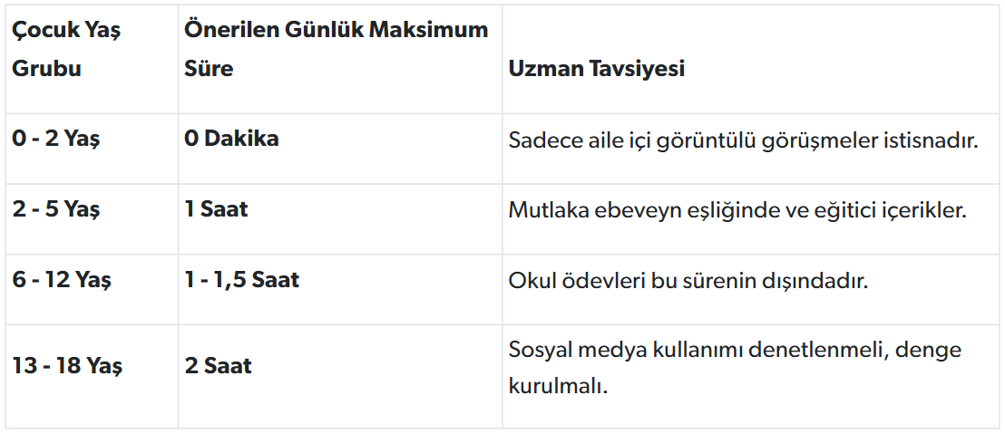 Peki 2026 güncel uzman görüşlerine göre çocuklar hangi yaşta ne kadar ekran kullanmalı?