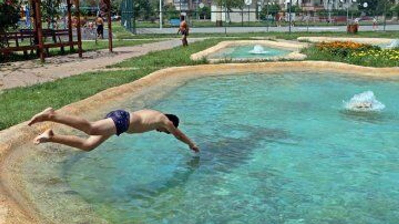 Hava sıcaklığının 35 derecenin üstüne çıktığı Antalya'da, sıcaktan bunalan çocuklar serinlemek için değişik yöntemler buluyor. Yaşları 9-12 arasında değişen çocuklar, Yenigün Mahallesi'ndeki bir süs havuzunda gönüllerince eğleniyor. Etrafı taşlık olan havuz kenarında akrobatik hareketler yapan çocuklar, suyun kirli olmasına aldırış etmeden saatlerce yüzüyor. Uzun süre havuzda kulaç atan çocuklar, fıskiye boruları ile elektrik kablolarını da umursamıyor. (iha)