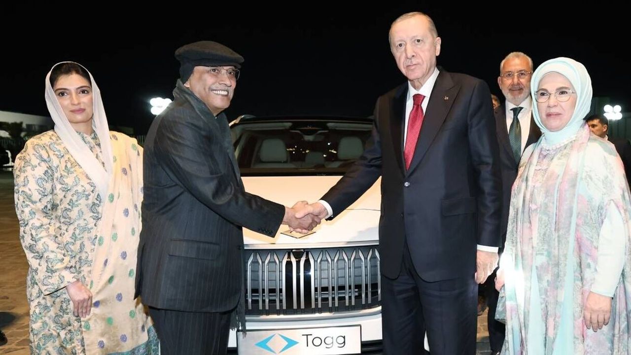 Cumhurbaşkanı Recep Tayyip Erdoğan, resmi ziyaret düzenlediği Pakistan'da temaslarını sürdürüyor. Cumhurbaşkanı Erdoğan, Pakistan Başbakanı Şahbaz Şerif'in ardından Cumhurbaşkanı Asıf Ali Zerdari’ye de Togg aracı hediye etti.