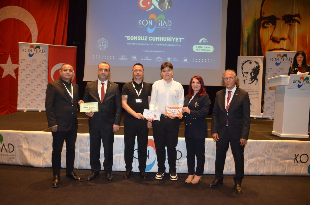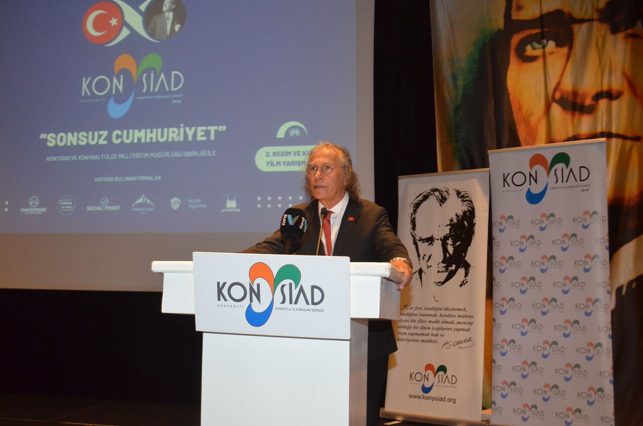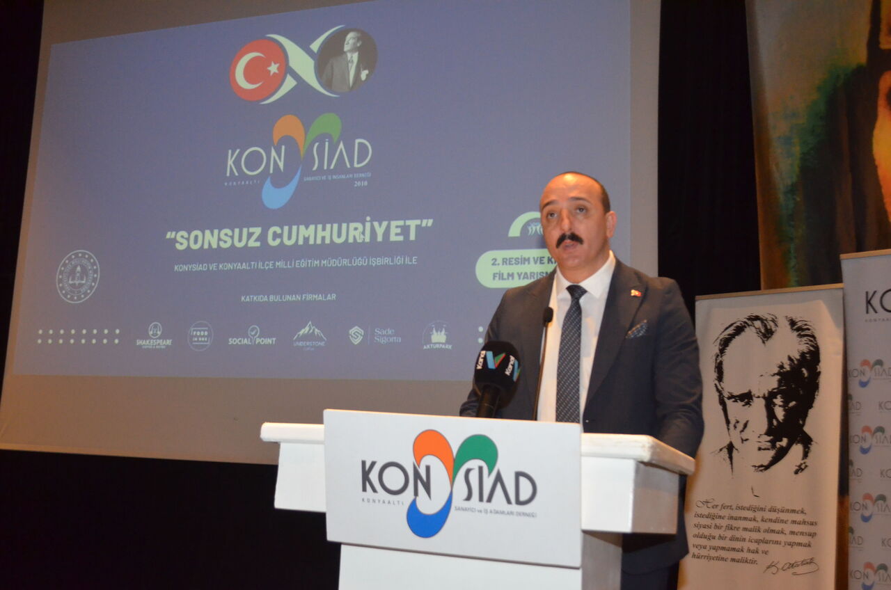 Cumhuriyetin kuruluşunun102. Yıl dönümü nedeniyle Konyaaltı Sanayici ve İş İnsanları Derneği (KONYSİAD) önemli bir etkinliğe imza attı. KONYSİAD ve Konyaaltı İlçe Milli Eğitim Müdürlüğü iş birliği ile ‘Sonsuz Cumhuriyet’ isimli kısa film ve resim yarışmasının kazananlarına ödülleri dağıtıldı. Törende ayrıca ünlü oyuncu Soner Türker de 'Kara Fatma'nın hayatı' isimli tiyatral bir anlatım sahneledi.
