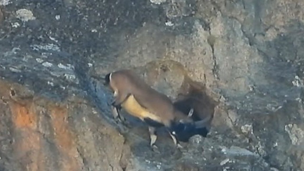 Yüksek rakımlı kayalık bölgede yiyecek arayışında olan yetişkin dağ keçisi, dar açıklığa sahip bir mağara girişine yöneldi. Oldukça büyük ve kıvrımlı boynuzlarına rağmen çevik hareketlerle dar geçitten içeri giren keçi, gözden kayboldu. Doğada "kayaların ustası" olarak bilinen dağ keçilerinin sarp ve zor arazi koşullarına uyum yetenekleri bir kez daha gözler önüne serildi. Bölgedeki yaban hayatı gözlemcileri, bu tür davranışların özellikle besin ve barınma arayışında sıkça görülebildiğini belirtti.