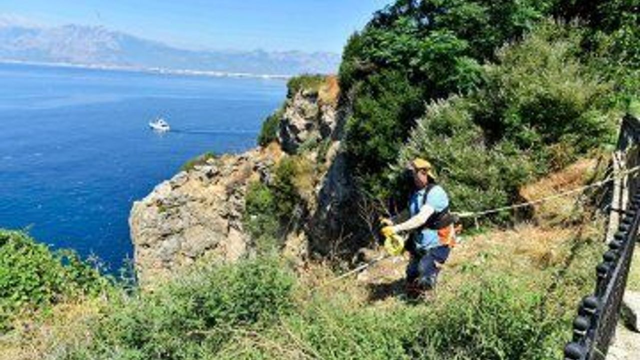 MURATPAŞA Belediyesi, Antalya'nın doğa harikası falezlerinde Akdeniz Üniversitesi (AÜ) Mağara Araştırma Kulübü'yle birlikte kapsamlı bir temizlik çalışması gerçekleştirdi. Güvenlik önlemleri alınarak özel dağcılık ve tırmanış ekipmanlarıyla Falez 2 Park'tan falezlere inen ekipler pet, metal, cam şişeler ve diğer atıkları topladı. Falezlerden toplanan atıklar, falezlerden yukarı çekilerek, çöp toplama araçlarına aktarıldı. Yetkililer, falezlerin kirletmemenin temizlemekten daha kolay olduğunu belirterek, herkesi falezlerin korunması ve temiz tutulması konusunda duyarlı olmaya çağırdı. (İHA)