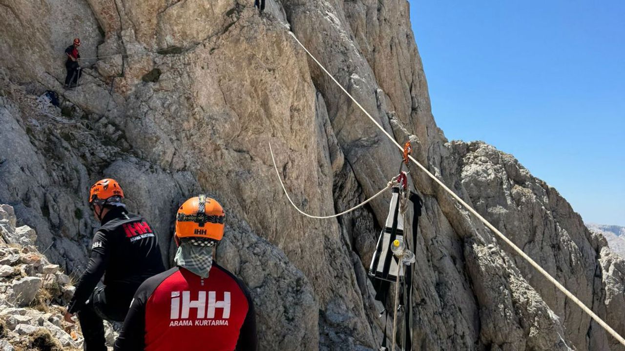 Gündoğmuş ilçesi Karabul Susambeli Yaylası'nda 9 gündür 2 bin 600 metre yükseklikteki sarp kayaların bulunduğu dağlık bölgede mahsur kalan 5 keçinin kurtarılması için Alanya İHH Arama Kurtarma ve Antalya ekipleri harekete geçti. İHH ekipleri, keçilerin mahsur kaldığı sarp arazide ipli sistem ve havai hat kurarak kurtarma çalışması yürüttü. Yaklaşık 5 saat süren operasyon sonunda keçilerin tamamı sağlıklı şekilde bulunduğu yerden alınarak, güvenli bölgeye indirildi. Kurtarılan keçiler, su içirildikten sonra sahibi Hasan Hüseyin Öztürk'e teslim edildi. Operasyonun başarıyla tamamlandığını açıklayan İHH Alanya Arama Kurtarma Başkanı Ramazan, ekiplerin doğa ve hayvan kurtarmalarında her zaman görev almaya hazır olduğunu belirtti.