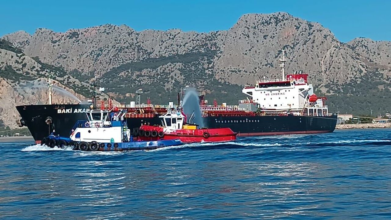 Antalya’da sabah saatlerinde, Petrol Ofisi şamandırası açıklarında demirleyen ‘Baki Akar’ isimli tanker gemisinde geniş kapsamlı bir tatbikat yapıldı.