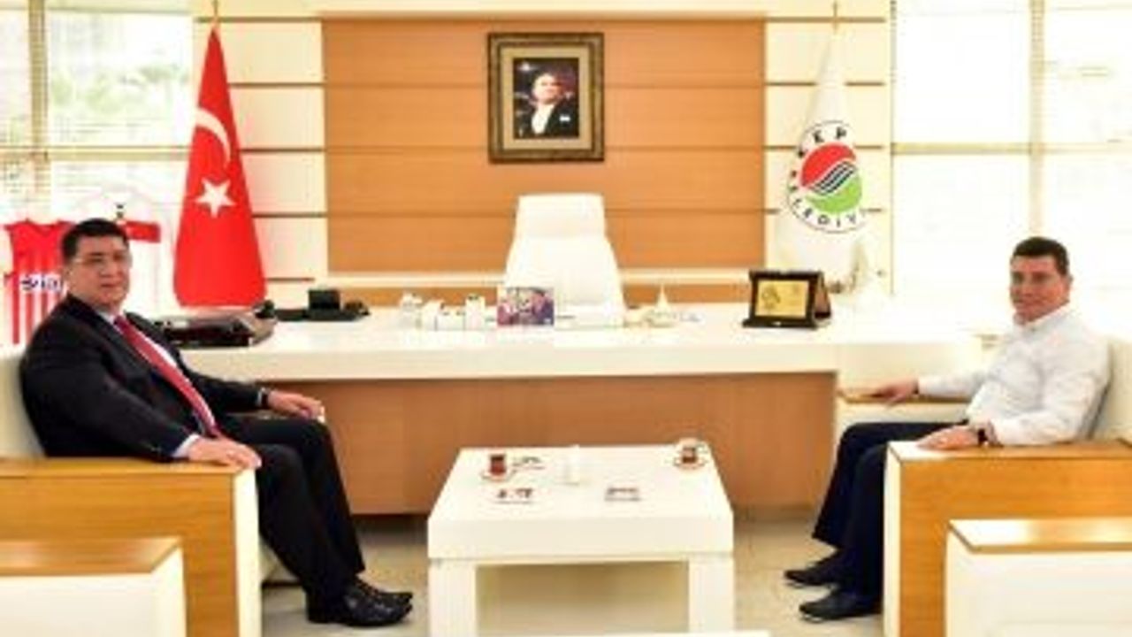 AHİLİK haftası nedeniyle Kepez Belediyesi Başkanı Hakan Tütüncü’ye desteklerinden dolayı teşekkür ziyareti yapan AESOB Başkanı Adlıhan Dere, Kepez esnafının mutlu olmasına dikkat çekti. Başkan Tütüncü’ye bir teşekkür plaketi takdim eden Dere, 75 bin üyeleri olduğunu ve 18 bin ile en fazla esnafın Kepezli olduğunu açıkladı.Şehirleşme konusundaki yatırımlarla Kepez’in esnaf için bir cazibe merkezi olmasına değinen Dere, “Kültür, Ahatlı, Yenidoğan gibi mahallelerimiz, turistik bölgeler gibi canlılık kazandı. Kepez’deki şehircilik yatırımları arttıkça, esnafın kazancının arttığını görüyoruz. Sabahın çok erken saatlerinden itibaren sık sık esnafımızı ziyaret eden başkanımız, plaketten fazlasını hak ediyor” diye konuştu.