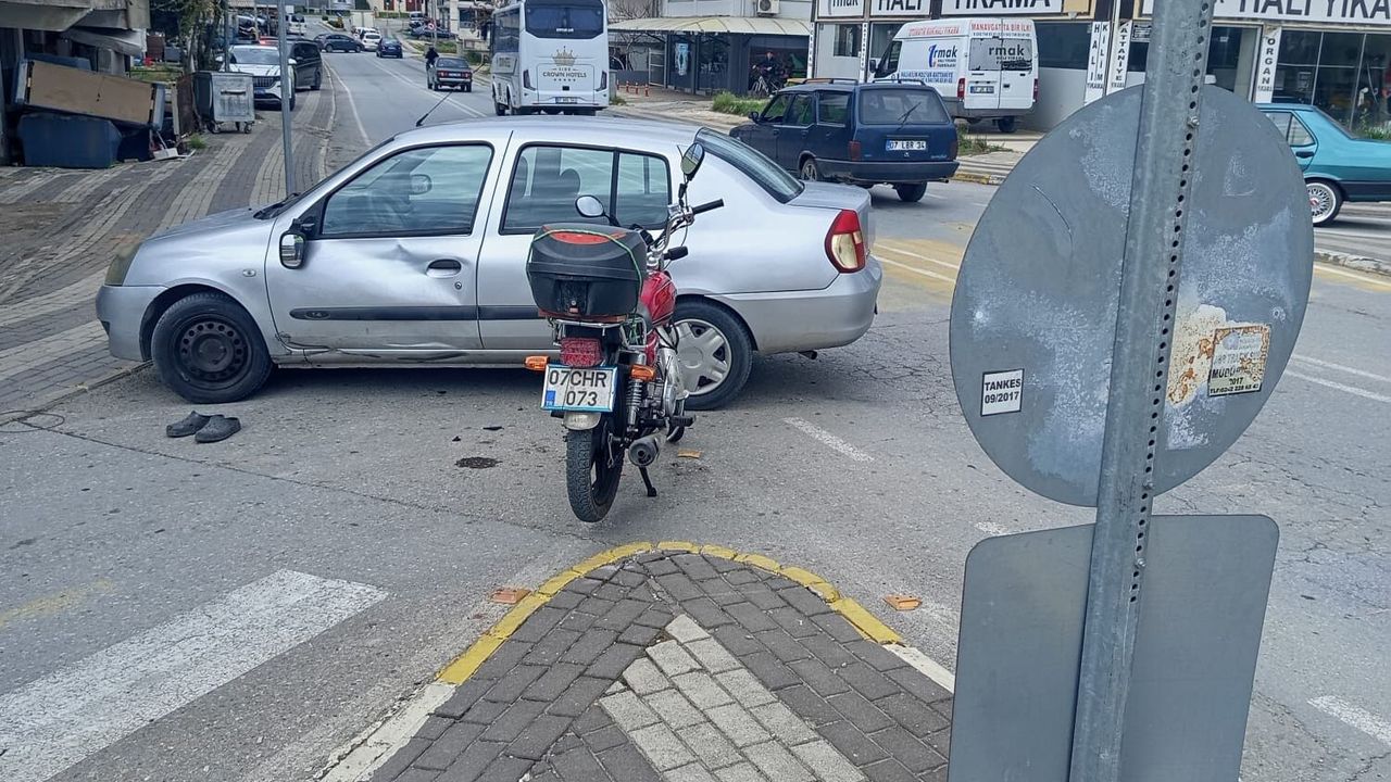 Antalya'nın Manavgat ilçesinde dönüş yasağına uymayarak manevra yapan otomobile, aynı istikamette seyir halindeki motosikletin çarpması sonucu motosiklette bulunan 2 kişi yaralandı