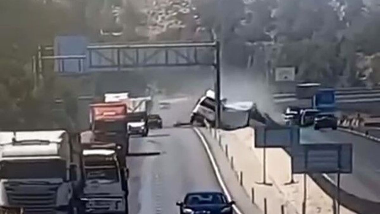 Öte yandan, kazanın güvenlik kamerası görüntüleri ortaya çıktı. Görüntülerde, sol şeritten seyretmekte olan tırın aniden kontrolden çıkarak yol kenarında bulunan direğin ayağına çarptığı görüldü. Çarpmanın şiddetiyle dorsenin kabinden ayrıldığı ve kabinin sürüklenmeye devam ettiği görülürken, karşı yönden seyreden bazı araçların kaza nedeniyle savrulan parçalardan son anda kurtulduğu görüldü.