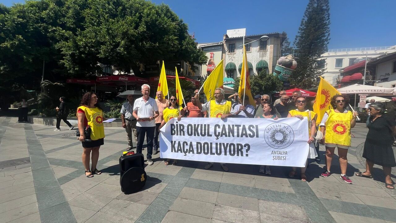 Artan enflasyon, sabit gelirli vatandaşı zor durumda bırakmaya devam ederken, okulların açılış tarihinin yaklaşması ile enflasyonun eğitim harcamalarına yansıması da gündem oldu. Eğitim-Sen Antalya Şubesi, artan harcamaların veliler üzerindeki etkisinin çok ağır olduğuna vurgu yaparak Attalos Meydanı’nda bir eylem gerçekleştirdi. Eylemde konuşan Eğitim-Sen Antalya Şube Başkanı Kadir Öztürk, eğitim bütçesinin artırılmasının zaruri olduğunu ifade etti.