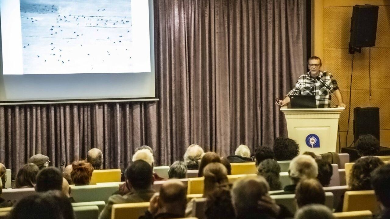 Gökhan Tiryaki konuşmasında bölgedeki bir diğer sorun olarak Güneş Enerjisi Santrali (GES) projelerine işaret etti. Doç. Dr. Tiryaki, Elmalı’da gittikçe artan GES inşaat alanlarının artık yerleşim alanlarını, meraları, tarlaları ve son olarak da arkeolojik sitleri tehdit eder duruma geldiğinin altını çizdi.