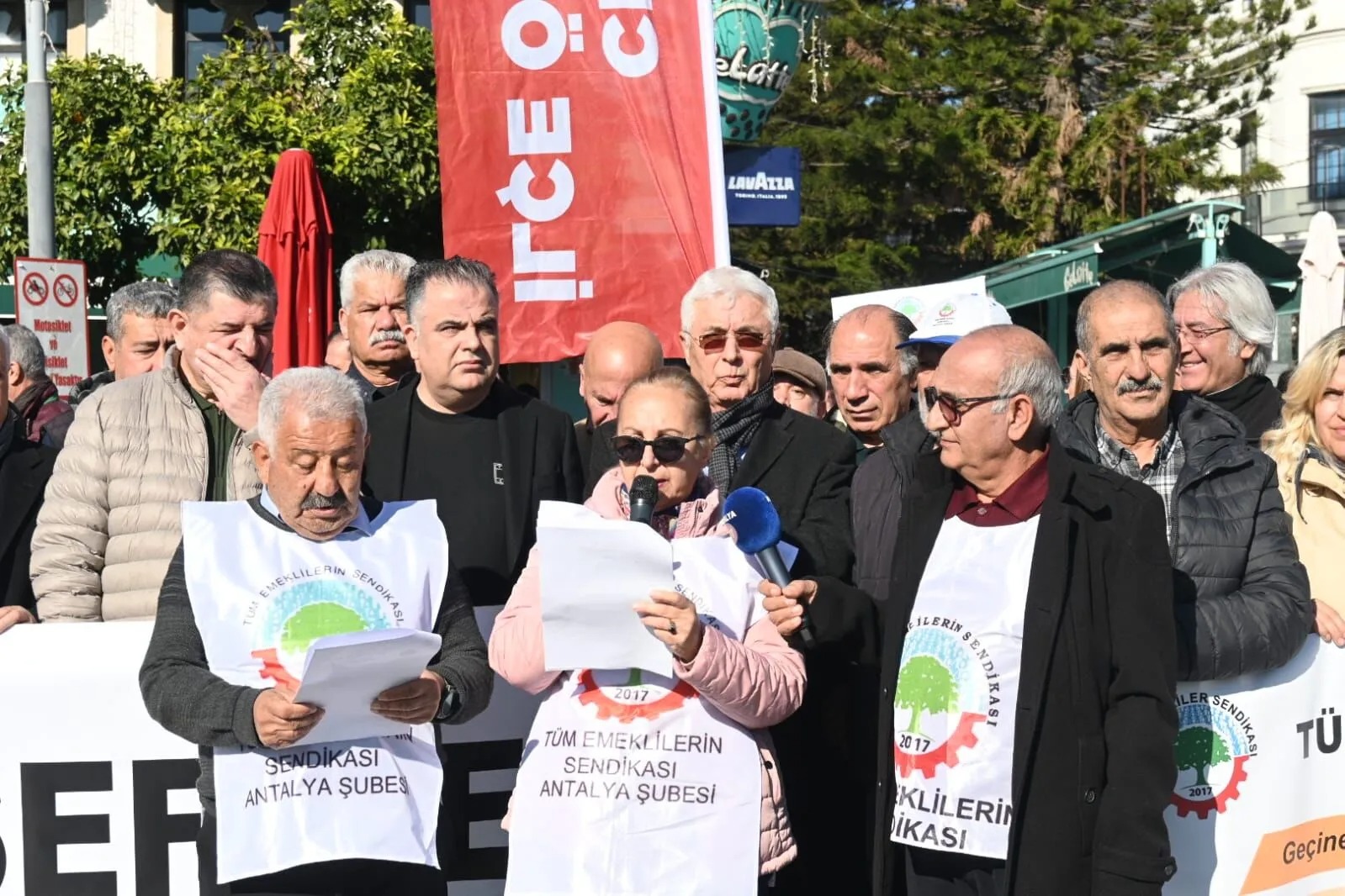 Attalos Meydanı’nda eylem gerçekleştiren emekliler adına basın açıklamasını Tüm Emekliler Sendikası Antalya Şubesi Genel Sekreteri Ferzan Sarsılmaz okudu. Sarsılmaz açıklamada şu sözlere yer verdi: "Türkiye’de emeklilik, iktidarın bilinçli tercihiyle onurlu ve güvenceli bir yaşam hakkı olmaktan çıkarılmış; sefalete mahkûmiyetin adı haline getirilmiştir. Milyonlarca emekli bugün yoksullukla, borçla ve barınma kriziyle boğuşuyorsa bunun nedeni ekonomik zorunluluklar değil; tek adam rejimi ve neoliberal yağma politikalarıdır. Bu ülkede emeklilik artık bir huzur ve güvence dönemi değil, açlıkla ölmemek mücadelesidir. Yıllarca çalışmış, üretmiş, bu ülkenin tüm değerlerini yaratmış emekçiler; bugün bilinçli bir sınıf politikasıyla açlığa itilmiştir. Tek adam rejimi altında uygulanan neoliberal ekonomi programı; sosyal devleti tasfiye etmiş, kamusal kaynakları sermayeye ve ayrıcalıklı bir azınlığa aktarmış, emeklileri ise cezalandırılması gereken bir “yük” olarak görmüştür. Bu bir yönetim hatası değil, bilinçli bir tercihtir."