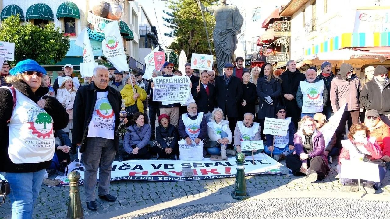 Emeklilerin yaşadıkları ekonomik sorunlara dikkat çekmek amacıyla düzenledikleri eylemlerine ara vermeden devam ediyor. 2 Ocak’tan beri devam eden eylemlerin sonuncusunda, Attalos Meydanı’nda yapılan oturma eyleminin ardından konuşan Tüm Emekliler Sendikası Antalya Genel Sekreteri Ferzan Sarsılmaz, 20 bin TL zam taleplerini yinelerken, şube başkanı Bilge Torosoğlu yapılan zammın yetersizliğine vurgu yaptı. Birleşik Emekliler Sendikası Antalya Şube Başkanı Ahmet Hilmi Kancı ise sosyal atık olmadıklarını, insanca yaşamak istediklerini söyledi.