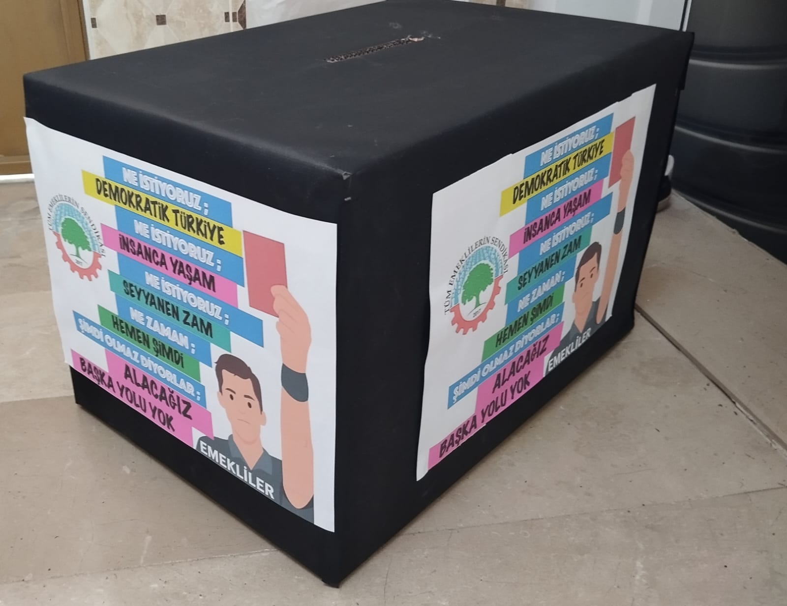 Eylemde emekliler, ‘emekliler ne istiyor sandığı’nda temsili olarak oy kullandılar. Sandıkta demokratik Türkiye, seyyanen zam, insanca yaşam ifadeleri yer aldı.