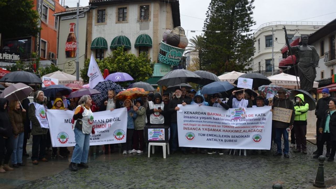 Toplumun net gelir olarak en az kazanan kesimi olan emekliler, en düşük emekli maaşının 20 bin liraya yükseltilip seyyanen zam yapılması talebiyle yeniden sokaklara çıktı. Yılbaşından bu yana birçok eylem yapan emekliler, son olarak Attalos Meydanı’ndan bir araya geldiler. Eyleme Cumhuriyet Halk Partisi, Türkiye Komünist Partisi, Emek Partisi, Türkiye İşçi Partisi, Sol Parti ve DEM Parti temsilcileri de katıldı. Yoğun yağış altında gerçekleşen eylemde emekliler, seyyanen zam taleplerini yinelediler.
