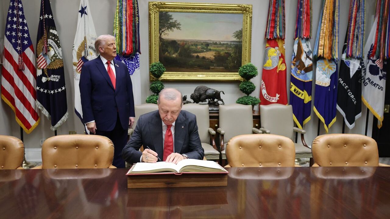 Cumhurbaşkanı Recep Tayyip Erdoğan ile ABD Başkanı Donald Trump arasında Beyaz Saray’da yapılan görüşme sona erdi. Görüşme, 2 saat 20 dakika sürdü. Trump, görüşme sırasında Cumhurbaşkanı Erdoğan’ın anı defterini imzalamak için oturacağı sandalyeyi çekerek jest yaptı. Görüşmenin ardından Trump, Cumhurbaşkanı Erdoğan’ı makam aracına kadar uğurladı. Trump’ın ayrıca uğurlama sırasında Dışişleri Bakanı Hakan Fidan, MİT Başkanı İbrahim Kalın, Enerji ve Tabii Kaynaklar Bakanı Alparslan Bayraktar ve diğer yetkililer ile ayaküstü sohbet ettiği görüldü.