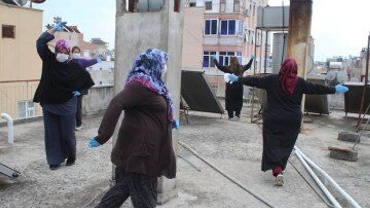KORONA virüs tedbirleri kapsamında yapılan 'evde kal' uyarısı ve 65 yaş üstü kişilere sokağa çıkma yasağı uygulanmasının ardından eve hapsolan vatandaşlar aktivitelerini dama taşıdı. Virüsten önce her sabah parklarda spor yapma alışkanlığı bulunan ev hanımları, çareyi damda spor yapmada buldu. Kronik rahatsızlığı bulunan ve 65 yaş üstü olan ev hanımları, ev işlerini tamamladıktan sonra haberleşip damların yolunu tutuyor. Eldiven, maske takan ve hanımları sosyal mesafeyi koruyarak damda hem yürüyüş hem de egzersiz hareketleri yaptı. 'Önce sağlık ve sosyal izolasyon' diyen kadınlara yandaki çatıdan bir ev hanımı da eşlik etti. Dama çıkamayan 80 yaşındaki yaşlı bir çiftin de balkonda yürüyüş yaptığı görüldü.