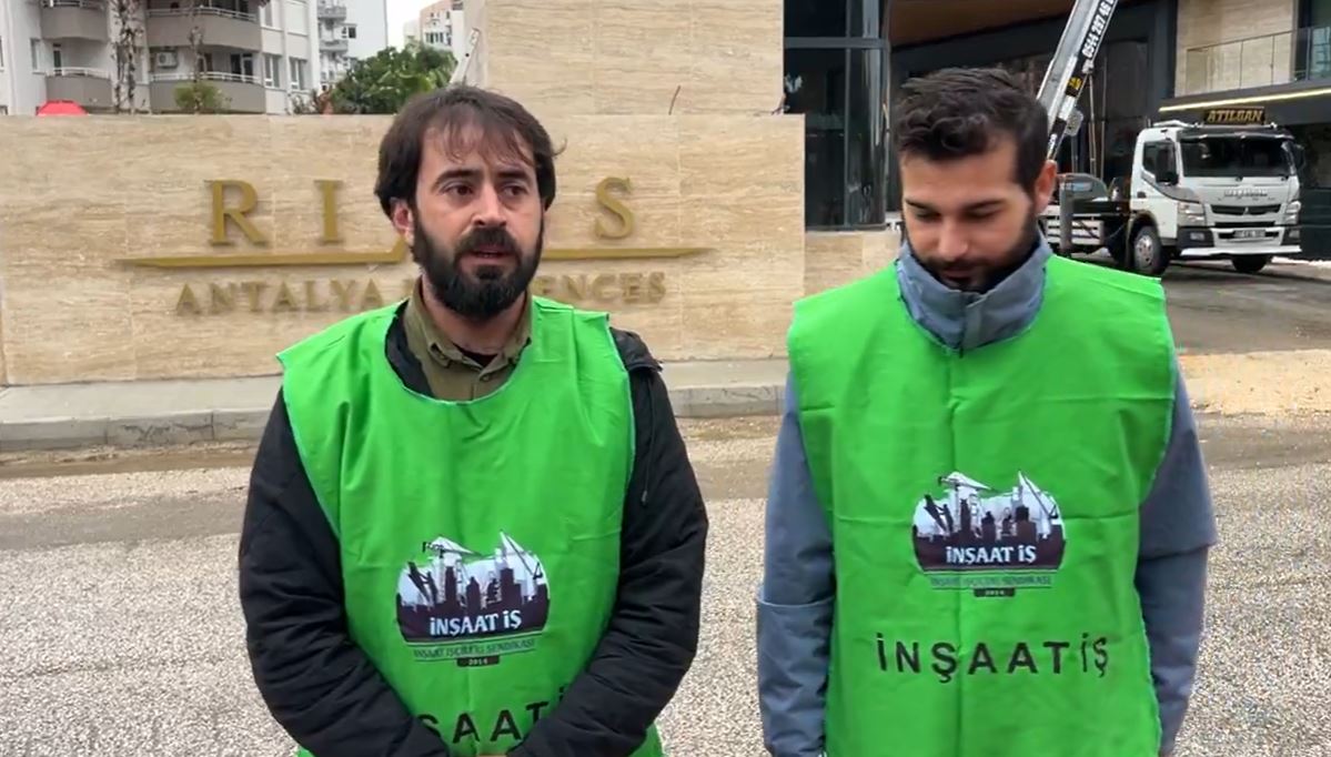 İnşaat-İş Sendikası üyesi bir işçi ise yaptığı açıklamada, “Bugün Antalya’da bulunan şantiye önünde saat 13.00’te eylem yapma kararı almıştık. Eylem öncesinde inşaat firması yetkilileriyle görüşmeler gerçekleştirdik. Görüşmeler neticesinde işçilerimizin tüm hakları ödendi. Haklarımızın ödenmesi nedeniyle yapacağımız eylem iptal edilmiştir. Eylem öncesi bizleri destekleyen tüm dostlarımıza, arkadaşlarımıza ve emekçi dostlarımıza teşekkür ederiz” ifadelerini kullandı.
