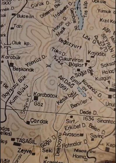 120 yıl öncesinde Alman bir uzman tarafından çizilen bir başka haritada ise Eynif Ovası’nın yıllık iklim ve hava durumuna göre göl havzası olduğu belirtiliyor.