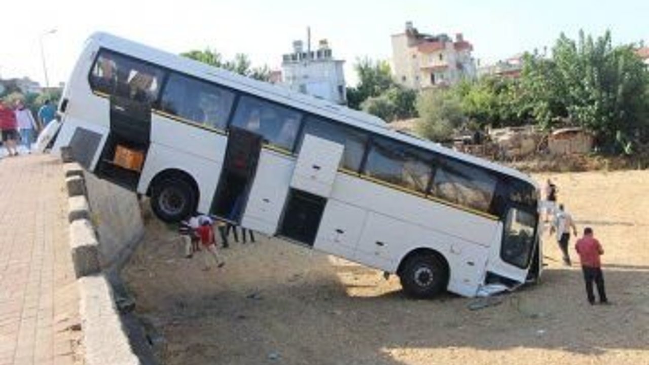 MANAVGAT Yayla Mahallesi 2588 Sokak'ta park halindeki otobüs freni boşaldığı için istinat duvarını aşarak aşağı uçtu. Bir otelin personelini taşımak için E.K'ya ait otobüsü kullanan M.Ç, sabah erken saatlerde otobüsü çalıştırıp otobüsten aşağıya indi. Otobüsü kontrol etmek amacıyla aşağıya inen M.Ç., otobüsün etrafında dolaşırken otobüsün hareket ettiğini gördü. Freni boşalan otobüs, Abdi İpekçi Caddesi'nde yol kenarında bulunan istinat duvarını kırarak aşağıya uçtu. Arka tamponu istinat duvarında kalan otobüs, uzun uğraşlar sonucu vinç yardımıyla boş araziye indirildi. Otobüsün içinde ve etrafında kimsenin olmaması sayesinde şans eseri kaza ucuz atlatıldı.