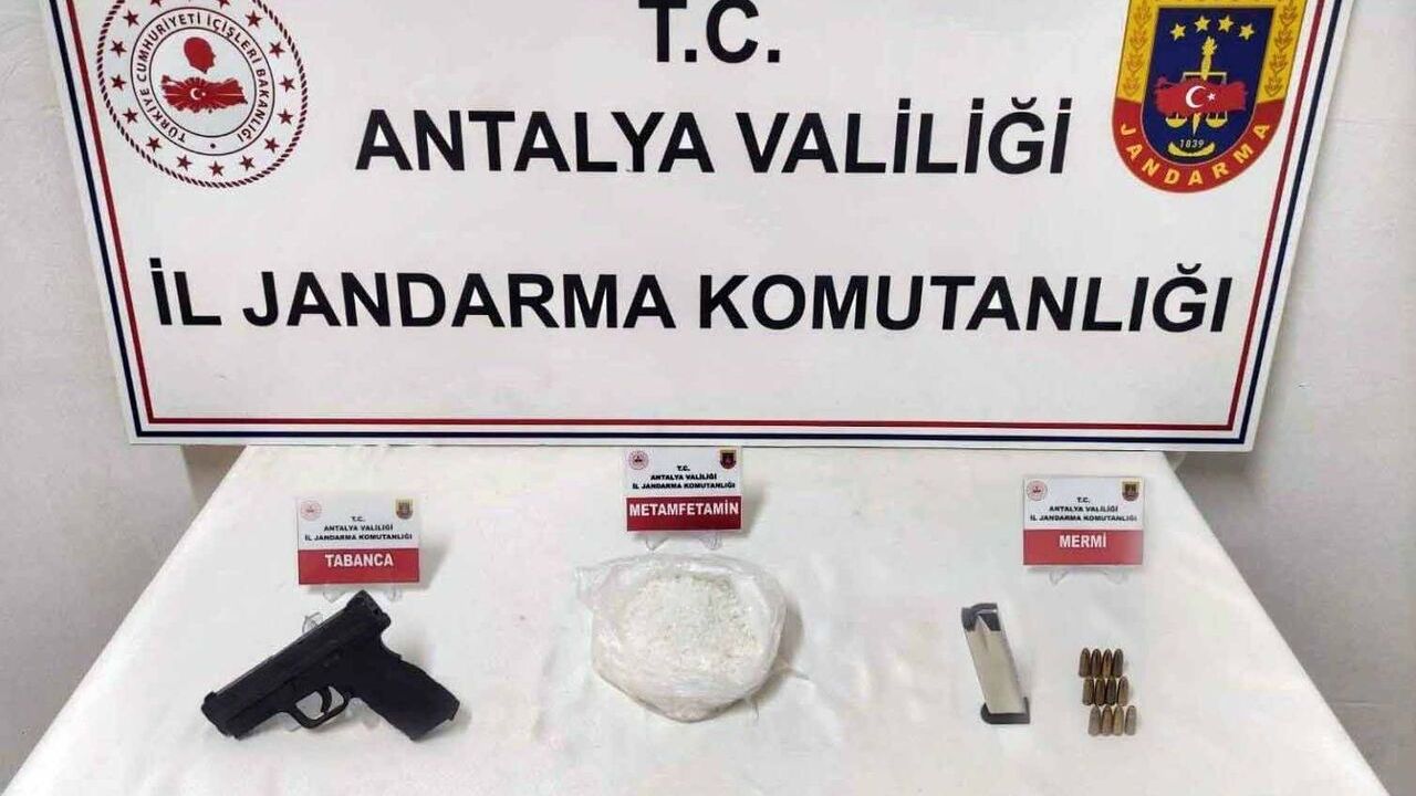 Gazipaşa Cumhuriyet Başsavcılığı talimatıyla, Antalya İl Jandarma Komutanlığı İstihbarat Şube Müdürlüğü, Narkotik Şube Müdürlüğü ve Gazipaşa İlçe Jandarma Komutanlığı ekiplerince yapılan çalışmalar kapsamında, Gazipaşa ilçesi Güney Yol Kontrol Noktası’nda şüphe üzerine 2 araç durduruldu. Araçlarda yapılan aramada 1 kilo 50 gram metamfetamin, 5 gram esrar, 1 ruhsatsız tabanca, 1 şarjör ve 12 fişek ele geçirildi. Olayla ilgili adli işlem başlatıldı.