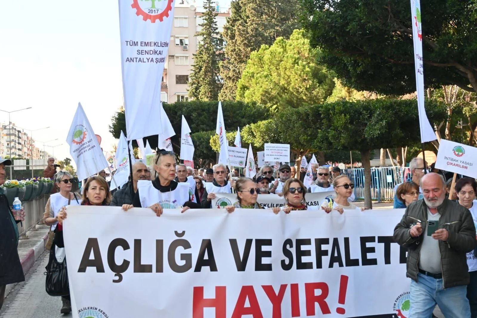 Türkiye’de artan ekonomik buhran vatandaşları sokağa döktü. İşçisinden emeklisine birçok kesim Antalya’da bir araya gelerek eylem yaptı. “Halk İçin Bütçe, Demokratik Türkiye” emekçi yürüyüşüne CHP Antalya İl Başkanı Nail Kamacı, CHP Antalya İl Örgütü, Devrimci İşçi Sendikaları Konfederasyonu (DİSK) Antalya Şubesi, Kamu Emekçileri Sendikaları Konfederasyonu (KESK), Tüm Emekliler Sendikası, Toplumsal Dayanışma için Avukatlar Derneği (TODAK), İşçi Avukatlar Kurulu, Antalya Barosu, Türkiye İnsan Hakları Derneği (İHD) Antalya Şubesi ile işçi ve emekçi sendikalarının üyeleri katıldı.