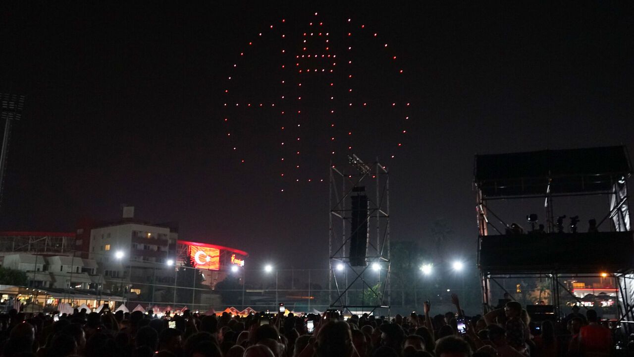 Emir Can İğrek'in performansının ardından sıradaki konser hazırlıkları esnasında Droneus.tr firması tarafından bu geceye özel olarak sergilenen ışıklı robotik drone gösterisi bakışları gökyüzüne kilitleyerek ilgiyle izlendi.