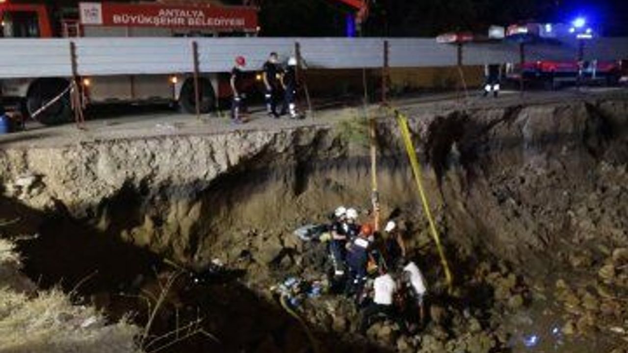 Antalya'da su tahliyesi yaptığı sırada göçük altında kalan inşaat işçisi vinç yardımıyla çıkarıldı