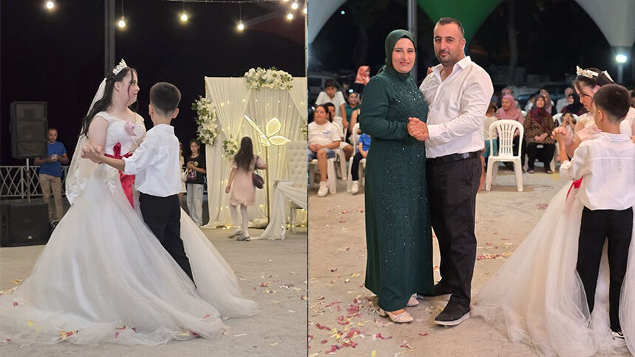 Çok sayıda davetlinin katıldığı etkinlikte Gülsüm kardeşi Çağrı'nın kolunda beyaz gelinliği ile düğün alanına gelirken ilk dansını da kardeşiyle gerçekleştirdi.