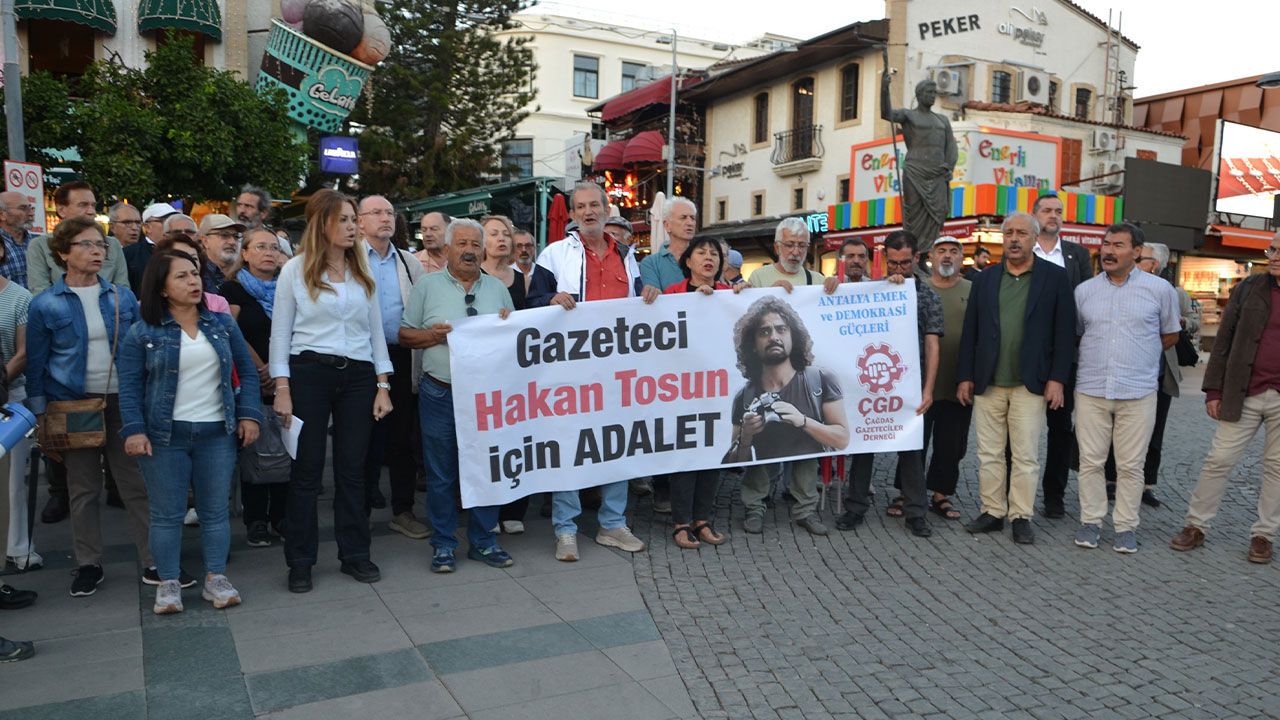 Çağdaş Gazeteciler Derneği (ÇGD) ve Emek ve Demokrasi Güçleri öncülüğünde yapılan basın açıklamasında konuşan ÇGD Akdeniz Şube Başkanı Ceren Deniz, “Hakan Tosun için adalet istiyoruz” diyerek, Tosun’un ölümünün üzerindeki sis perdesinin aralanmasını talep etti.