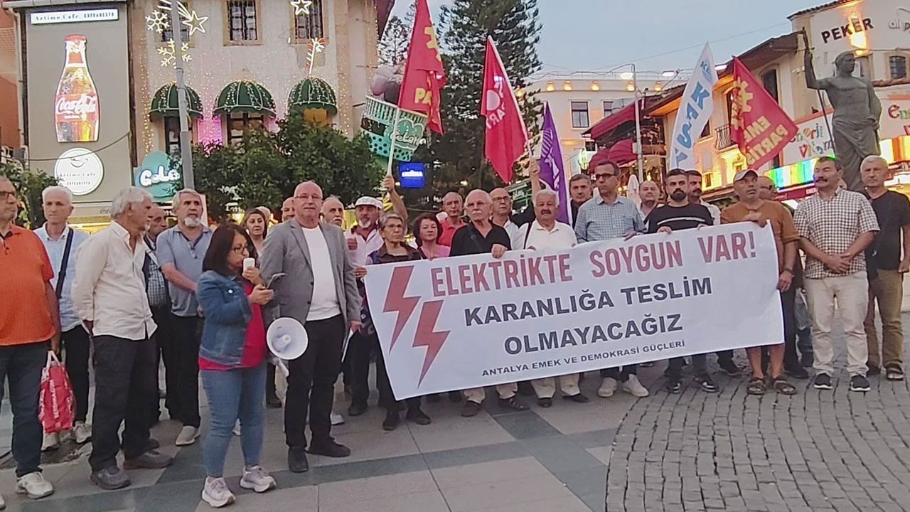 Antalya Emek ve Demokrasi Güçleri, 1 Ocak 2026’da yürürlüğe girecek yeni elektrik tarifesine karşı Attalos Meydanı’nda açıklama yaptı. “Enerjiye erişim bir insan hakkıdır, halkı yeni yüklerle cezalandırmayın” çağrısı yapıldı