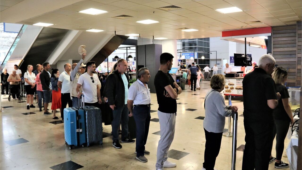 Türkiye'de 28 Mayıs'ta yapılacak olan Cumhurbaşkanlığı seçiminin 2. turu çerçevesinde yurt dışındaki seçmen kütüğüne kayıtlı vatandaşlar Antalya Havalimanında yoğunluk oluşturdu