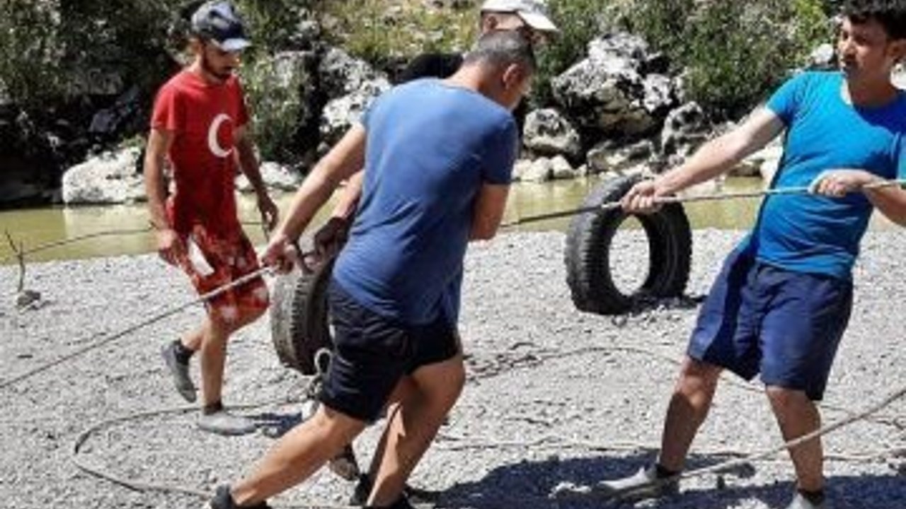 Sıcak havalarda kendi imkanları ile hazırladıkları parkurlarda yarışan gençler serin sularda hem yarışıp hem de eğleniyorlar. (İHA)