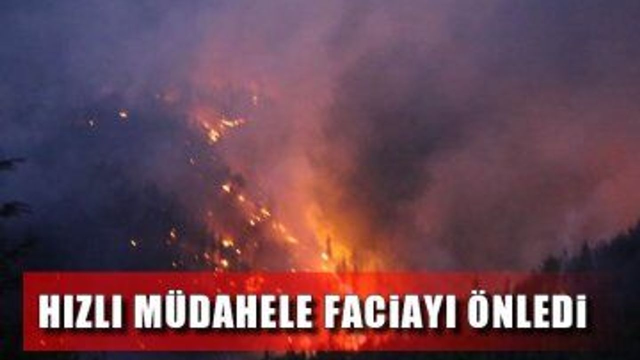 Yerleşim yerlerine doğru yönelmekte olan yangın çok ciddi bir müdahale ile önlendi. Bölgede kurulan gözlem - kontrol noktasından takip edilen yangın söndürme çalışmaları aralıksız devam etti. (İHA)