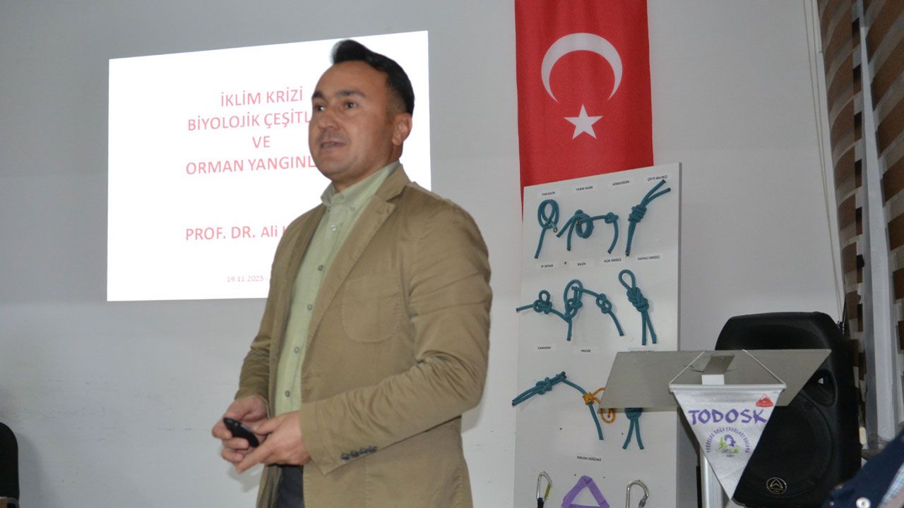 Türkiye Ormancılar Derneği Batı Akdeniz Şubesi Yönetim Kurulu Üyesi, Yüksek Orman Mühendisi Prof. Dr. Ali Kavgacı, Toroslar Doğa Sporları Spor Kulübü’nde “İklim Krizi, Biyolojik Çeşitlilik ve Orman Yangınları” başlıklı kapsamlı bir sunum gerçekleştirdi. Kulübün eğitim salonunda düzenlenen etkinlikte Prof. Kavgacı, iklim sisteminin temel tanımlarından yola çıkarak biyolojik çeşitlilik, iklim değişikliği ve orman yangınları arasındaki ilişkiyi tüm yönleriyle ele aldı.