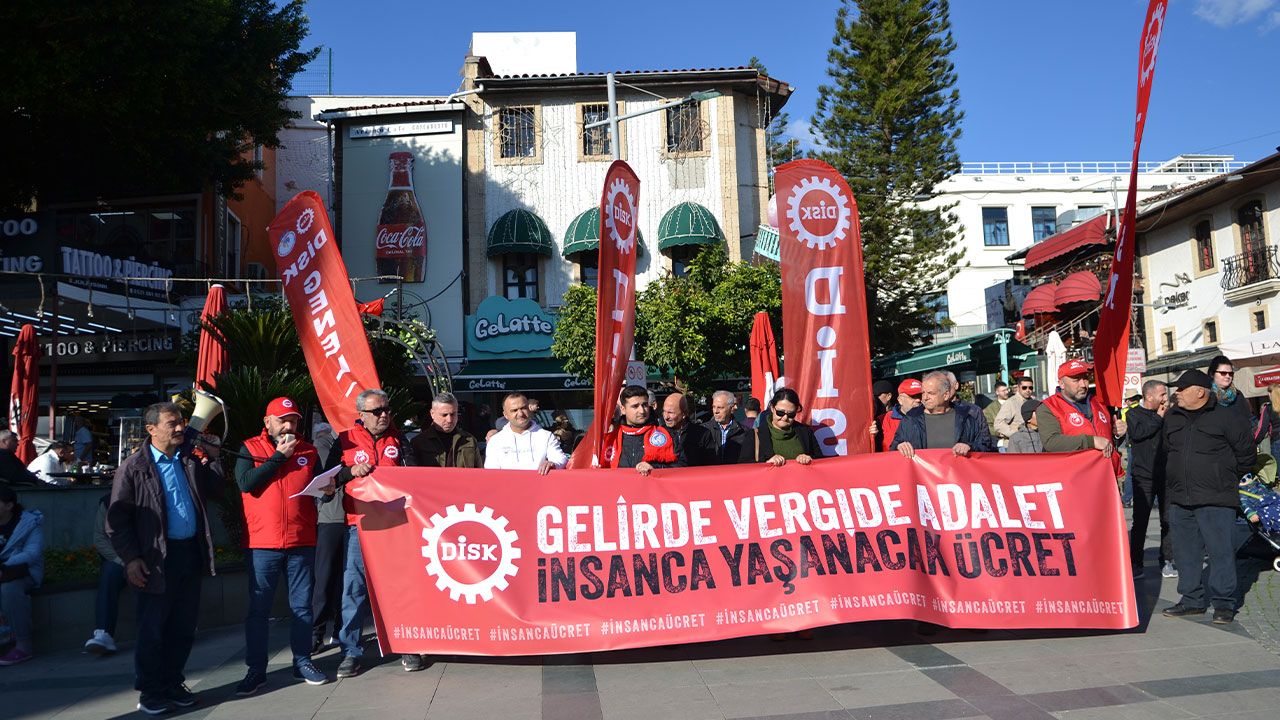 Basın açıklamasının sonunda, Türkiye’nin 'ucuz emek cenneti” haline getirilmek istendiği ifade edilerek işçilere birlik ve örgütlenme çağrısı yapıldı. DİSK Akdeniz Bölge Temsilcisi Vedat Küçük, açıklamada şu ifadelere yer verdi: “Antalya’dan sesleniyoruz: Siz işçiyi yok saysanız da biz buradayız. Siz bizi açlığa mahkûm etmeye çalışsanız da biz emeğimizi, ekmeğimizi, geleceğimizi ve memleketimizi savunmaya kararlıyız. Gelirde, vergide ve ülkede adalet sağlanana dek mücadelemiz devam edecek.”