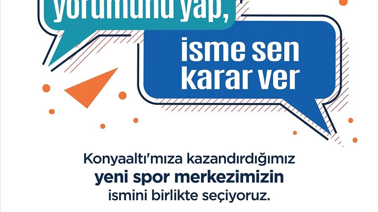 Konyaaltı Belediyesi tarafından halka kazandırılan yeni spor merkezinin ismini halk seçecek. Vatandaşlar, sosyal medya üzerinden öneride bulunarak tesisin adını birlikte belirleyecek. Konyaaltı Belediye Başkanı Cem Kotan, "Yeni spor tesisimizin adını halkımızın katılımıyla seçerek, tesise yeni bir kimlik kazandırmak istiyoruz" dedi