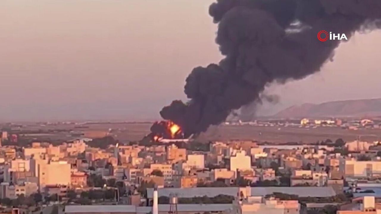 Saldırı sonrası Meşhed Havaalanı'ndan siyah dumanlar yükseldi.