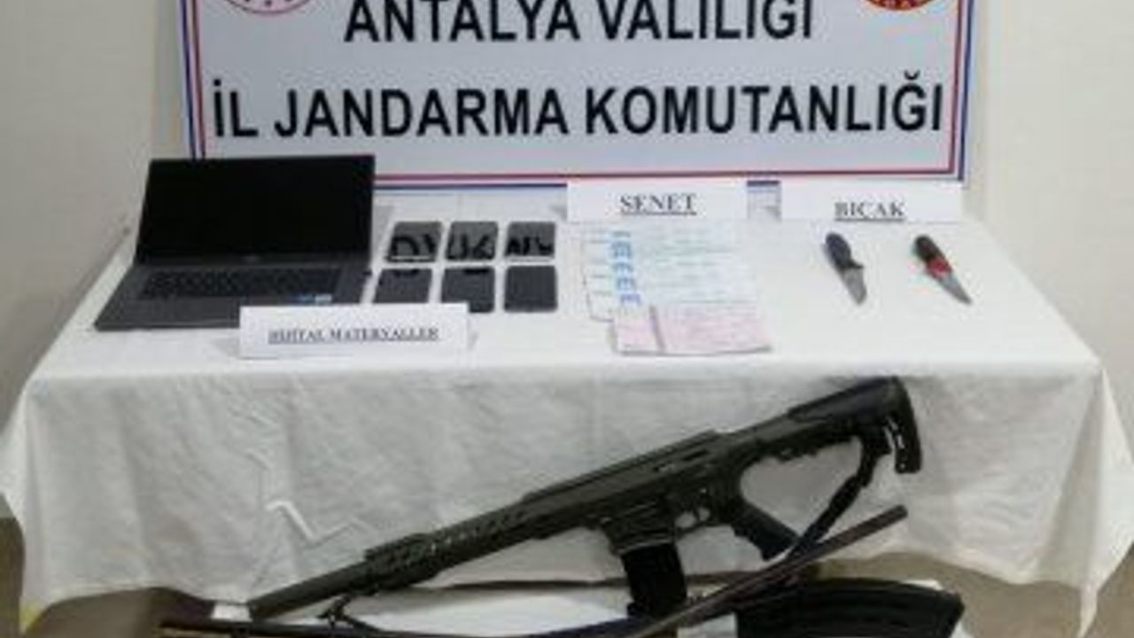 MANAVGAT'TA mağdur B.B. isimli şahsı; İ.K., Z.Ö.U., S.B. ve S.S. isimli şahısların silah tehdidiyle ve şantaj uygulamak suretiyle 600 bin TL değerinde zorla senet imzalattıkları, aynı zamanda şahsı darp ederek hakaret ve tehditte bulundukları olayı ile ilgili olarak şüpheli şahısların ikamet adreslerinde arama geçekleştirildi. Yapılan aramada; 3 adet yivsiz av tüfeği, 2 adet 600 bin TL değerinde senet, 5 adet boş senet, 2 adet bıçak, 1 adet silah dürbünü ve 300 adet av tüfeği fişeği ele geçirildi. Olayla ilgili şüpheli 4 kişi ise tutuklandı. İHA