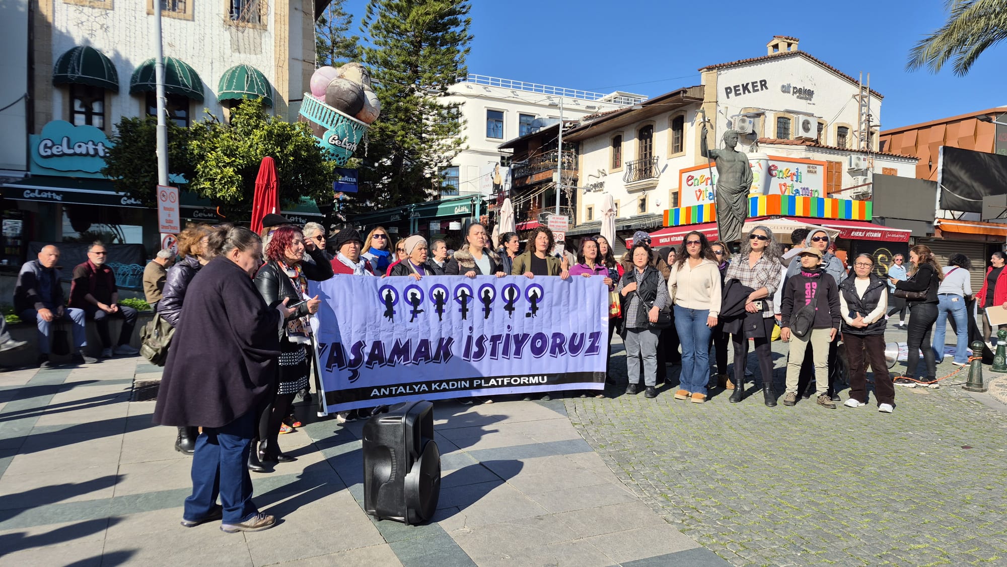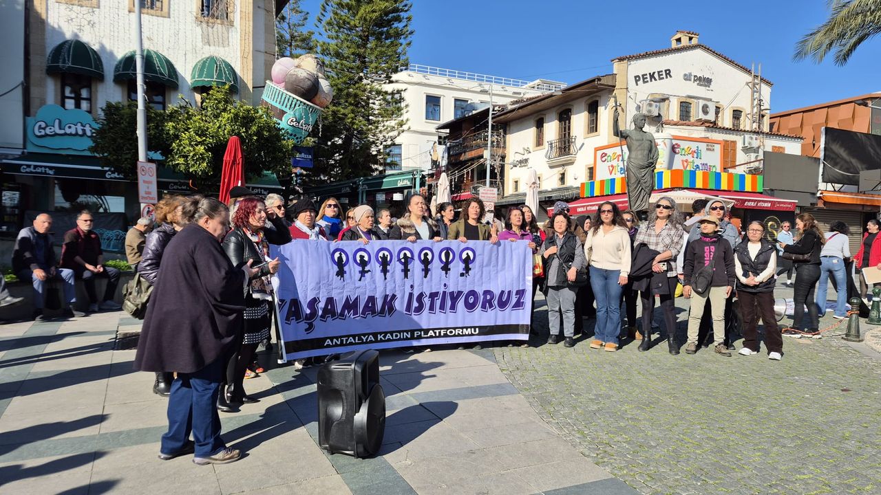Antalya Kadın Platformu üyeleri, Antalya’nın simge noktalarından Attalos Heykeli önünde bir araya gelerek bir gün içinde işlenen 6 kadın cinayetini protesto etti. Açıklamada, Türkiye’de artan kadın cinayetlerinin tesadüf olmadığı vurgulandı.